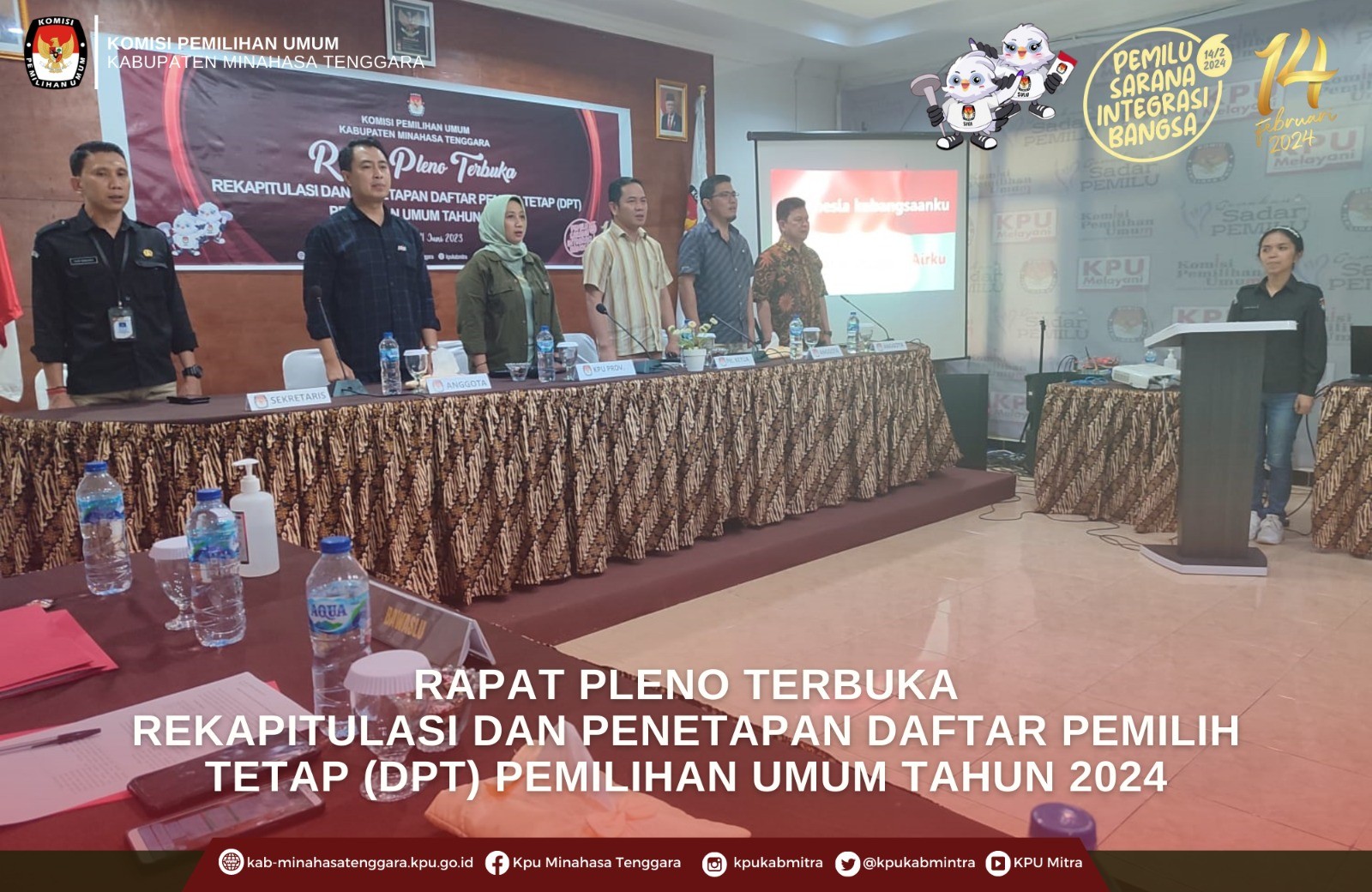 Penetapan tersebut disaksikan oleh Bawaslu, Dandim 1302 Minahasa, Polres, Dinas Dukcapil, Badan Kesbangpol, Perwakilan Partai Politik, Badan Adhoc dan KPU Provinsi Sulut dalam Rapat Pleno Terbuka Rekapitulasi dan Penetapan DPT Pemilu Tahun 2024 yang dilaksanakan di Aula Kantor KPU Mitra, Rabu (21/06/2023)