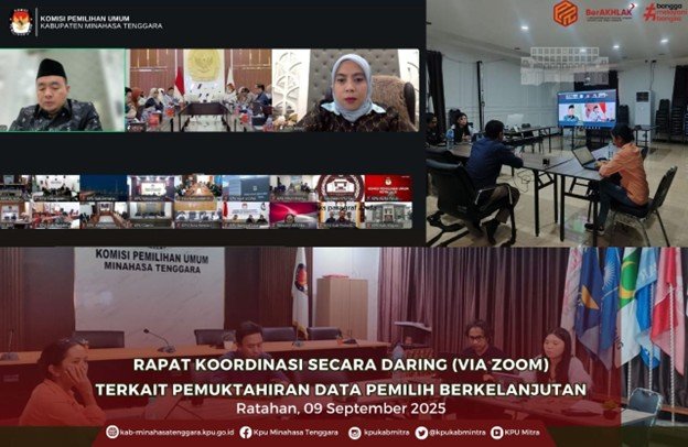 Minahasa Tenggara, Ratahan - Komisi Pemilihan Umum (KPU) Kabupaten Minahasa Tenggara (Mitra) mengikuti Rapat Koordinasi Pemuktahiran Data Pemilih Berkelanjutan Triwulan III (Rakor PDPB TW III) bersama dengan KPU RI yang dilaksanakan secara daring pada Selasa, 9 September 2025.