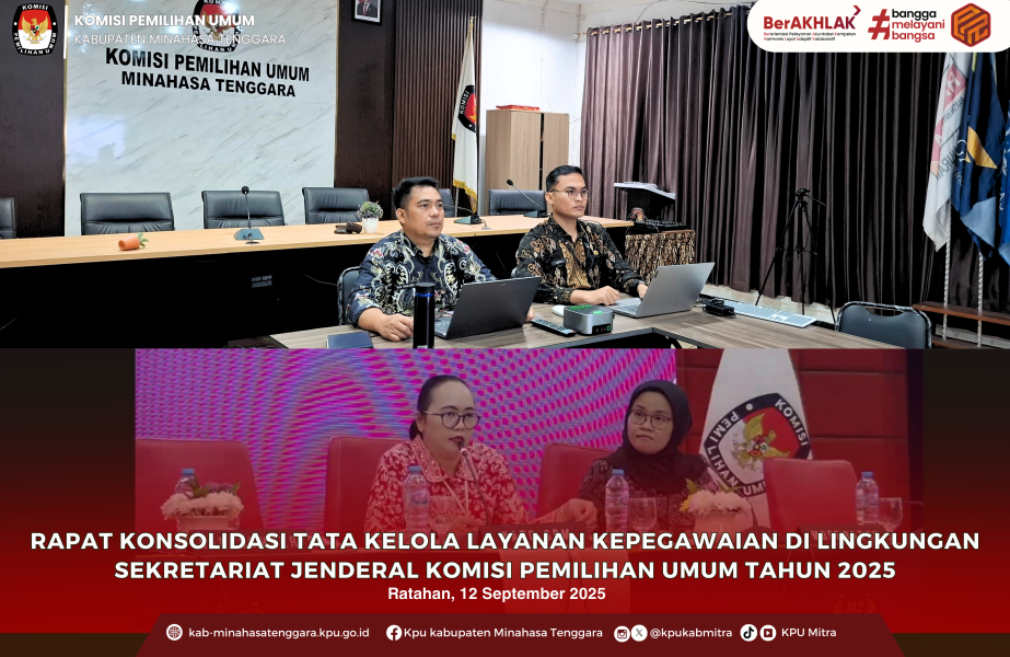 Ratahan — Komisi Pemilihan Umum (KPU) Kabupaten Minahasa Tenggara mengikuti Rapat Konsolidasi Tata Kelola Layanan Kepegawaian yang diselenggarakan secara daring oleh Sekretariat Jenderal KPU RI. Kegiatan ini bertujuan menyelaraskan kebijakan layanan kepegawaian serta menyelesaikan disparitas data ASN dalam aplikasi SIASN sebagai bagian dari peningkatan Indeks Kualitas Data (IKD).
