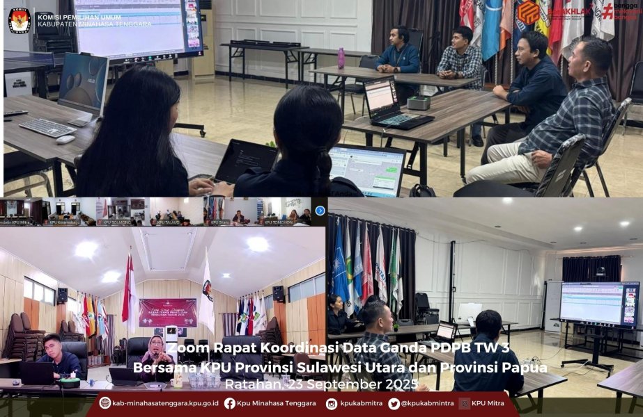 Minahasa Tenggara, Ratahan – Selasa 23 September 2025 Komisi Pemilihan Umum (KPU) Provinsi Sulawesi Utara (Sulut) bersama dengan KPU Kabupaten/Kota melakukan Rapat Koordinasi Pemuktahiran Data Pemilih Berkelanjutan Triwulan III (Rakor PDPB TW III) bersama dengan KPU Provinsi Papua yang dilaksanakan secara daring.