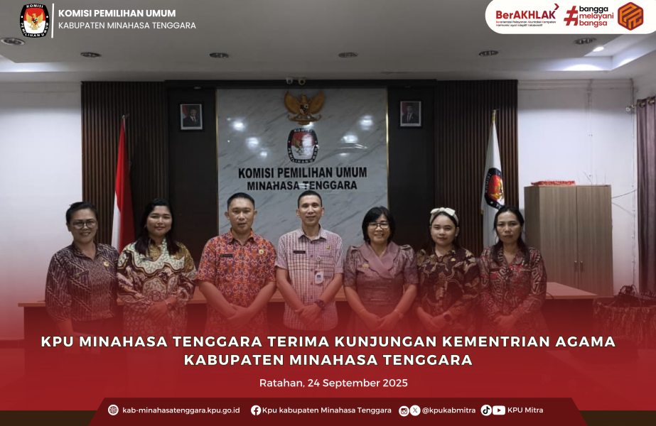 Ratahan — Kementerian Agama Kabupaten Minahasa Tenggara melaksanakan kunjungan ke Kantor Komisi Pemilihan Umum (KPU) Kabupaten Minahasa Tenggara dalam rangka Koordinasi tugas dan fungsi penyuluh agama melalui pelayanan bina rohani, Rabu (24/9/2025).