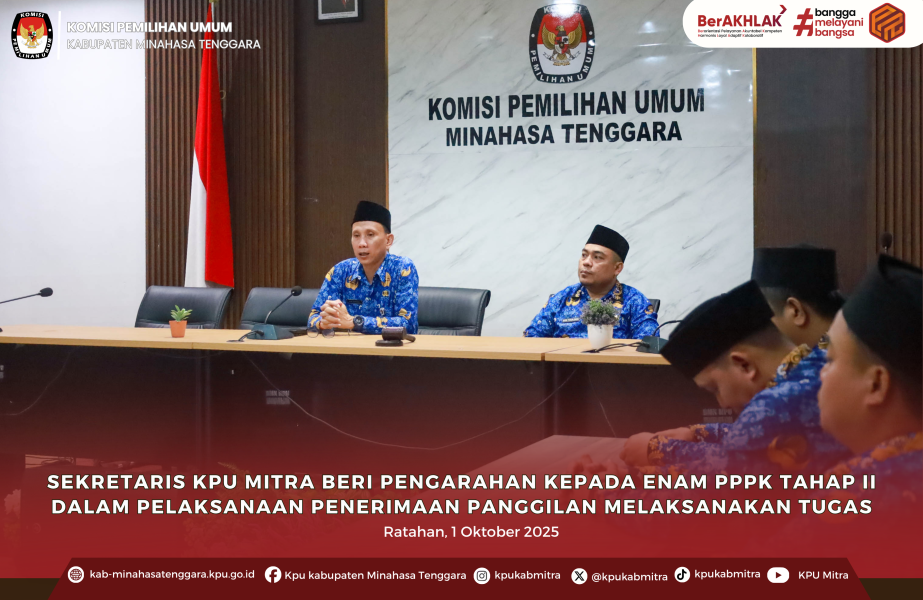 “Enam PPPK Tenaga Teknis yang mulai bertugas hari ini menjadi bagian penting dari keluarga besar KPU Minahasa Tenggara. Disiplin, komitmen, dan kerja sama adalah kunci agar pelayanan kelembagaan semakin baik,” ujar Sekretaris KPU Mitra.