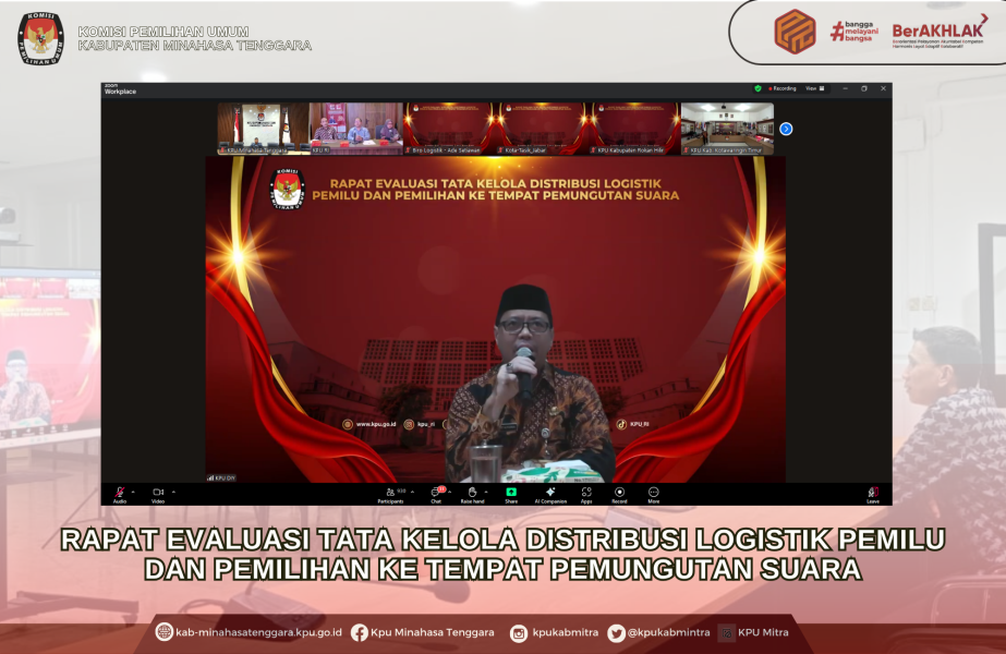 Ratahan, 10 Oktober 2025-KPU Kabupaten Minahasa Tenggara ikuti kegiatan Rapat Evaluasi Tata Kelola Distribusi Logistik Pemilu dan Pemilihan ke Tempat Pemungutan Suara yang diselenggarakan oleh KPU RI. Kegiatan ini dilaksanakan secara daring dan diikuti oleh Sekretaris KPU Kabupaten Minahasa Tenggara, Fajri Monoarfa bersama Kasubbag Keuangan, Umum dan logistik, Jems Kumajas.