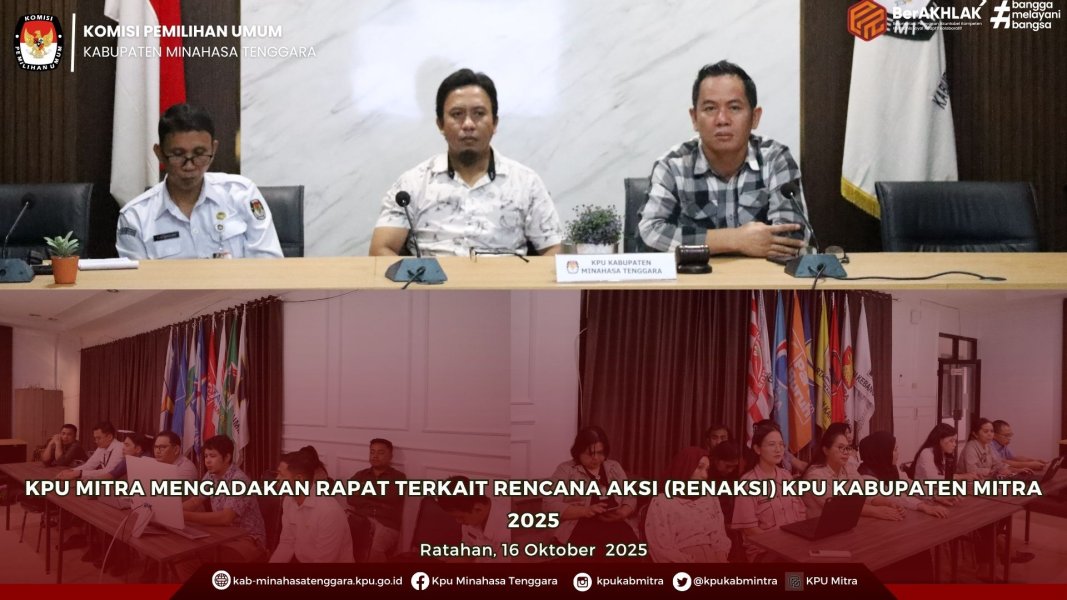 Ratahan - Berdasarkan agenda Komisi Pemilihan Umum (KPU) Kabupaten Minahasa Tenggara Kamis, 16 Oktober 2025, KPU Kabupaten Minahasa Tenggara melaksanakan Rapat Pembahasan Terkait Rencana Aksi KPU Kabupaten Minahasa Tenggara Tahun 2025.