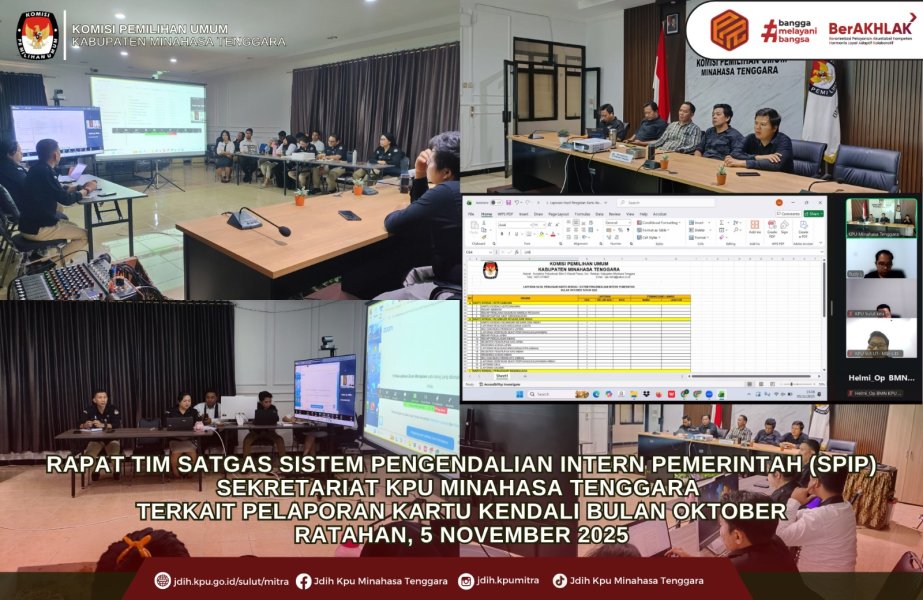 KPU Minahasa Tenggara Gelar Rapat Tim Satgas SPIP Pelaporan Kartu Kendali Bulan Oktober 2025