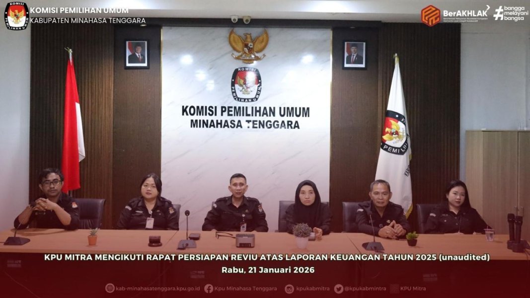 Ratahan – KPU Kabupaten Minahasa Tenggara (Mitra) mengikuti Rapat Persiapan Reviu atas Laporan Keuangan Tahun 2025 (Unaudited) yang diselenggarakan secara daring oleh KPU Republik Indonesia (RI) pada Rabu, 21 Januari 2026.