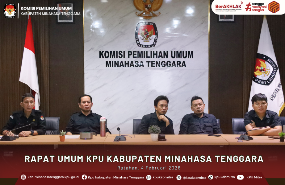 Ratahan — Komisi Pemilihan Umum (KPU) Kabupaten Minahasa Tenggara melaksanakan rapat umum evaluasi dan konsolidasi kinerja kelembagaan pada Rabu, 4 Februari 2026, bertempat di Kantor KPU Kabupaten Minahasa Tenggara. Kegiatan ini diikuti oleh pimpinan, kepala subbagian, dan jajaran sekretariat sebagai bagian dari evaluasi pelaksanaan tugas dan capaian kegiatan bulanan.