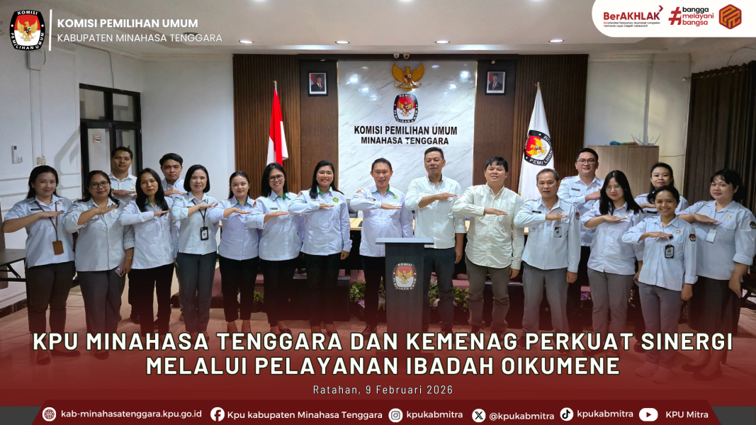 Ratahan – Komisi Pemilihan Umum (KPU) Kabupaten Minahasa Tenggara bersama Kementerian Agama (Kemenag) Kabupaten Minahasa Tenggara memperkuat sinergi kelembagaan melalui kerja sama Pelayanan Ibadah Oikumene, sebagai bagian dari upaya membangun nilai spiritualitas, persatuan, dan kebersamaan dalam kehidupan berorganisasi dan pelayanan publik.