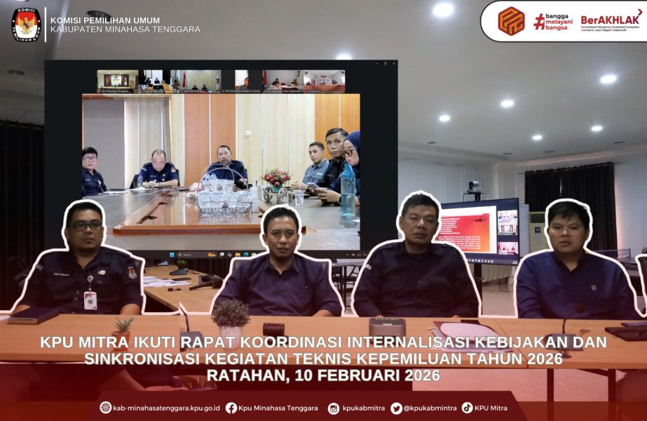 Ratahan – Komisi Pemilihan Umum (KPU) Kabupaten Minahasa Tenggara mengikuti Rapat Koordinasi Sinkronisasi Kegiatan Teknis Kepemiluan Tahun 2026 yang dilaksanakan oleh KPU Provinsi Sulawesi Utara secara dalam jaringan (daring) melalui aplikasi zoom meeting dari kantor KPU Minahasa Tenggara (10/2/26).