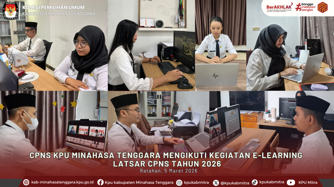 Ratahan - Delapan Calon Pegawai Negeri Sipil (CPNS) di lingkungan KPU Kabupaten Minahasa Tenggara mengikuti kegiatan Pembukaan E-Learning Latsar CPNS Tahun 2026 pada Kamis, 5 Maret 2026.Kegiatan yang diselenggarakan oleh Balai Pendidikan dan Pelatihan Keagamaan Manado ini adalah bagian dari tahap awal dalam rangkaian Pelatihan Dasar (Latsar) CPNS yang dilaksanakan melalui metode pembelajaran mandiri (self learning) berbasis digital.