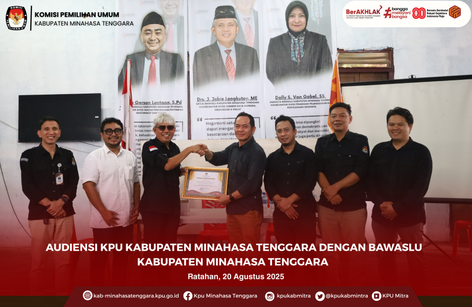 Audiensi ini menjadi wadah memperkuat sinergitas antar penyelenggara pemilu sekaligus ajang silaturahmi kelembagaan. Hadir dalam kesempatan tersebut Ketua KPU Minahasa Tenggara Otnie N. Tamod bersama Anggota dan Sekretariat, serta Ketua dan Anggota Bawaslu Minahasa Tenggara.