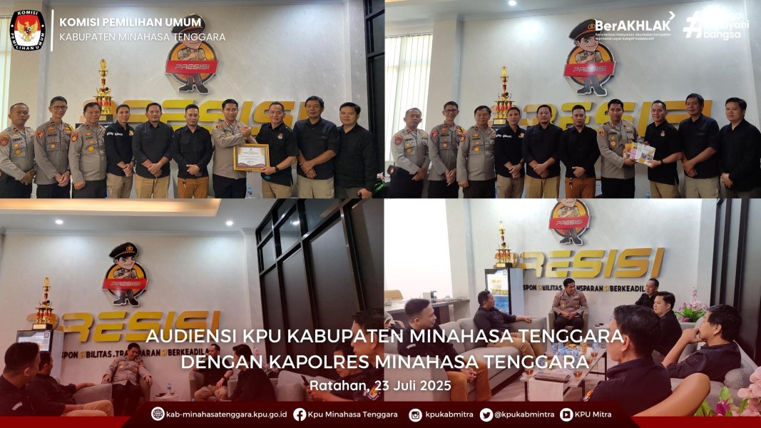 Ratahan - Komisi Pemilihan Umum (KPU) Kabupaten Minahasa Tenggara (Mitra) melakukan audiensi dengan Kepala Kepolisian Resor (Kapolres) Minahasa Tenggara, Rabu (23/07/2025).