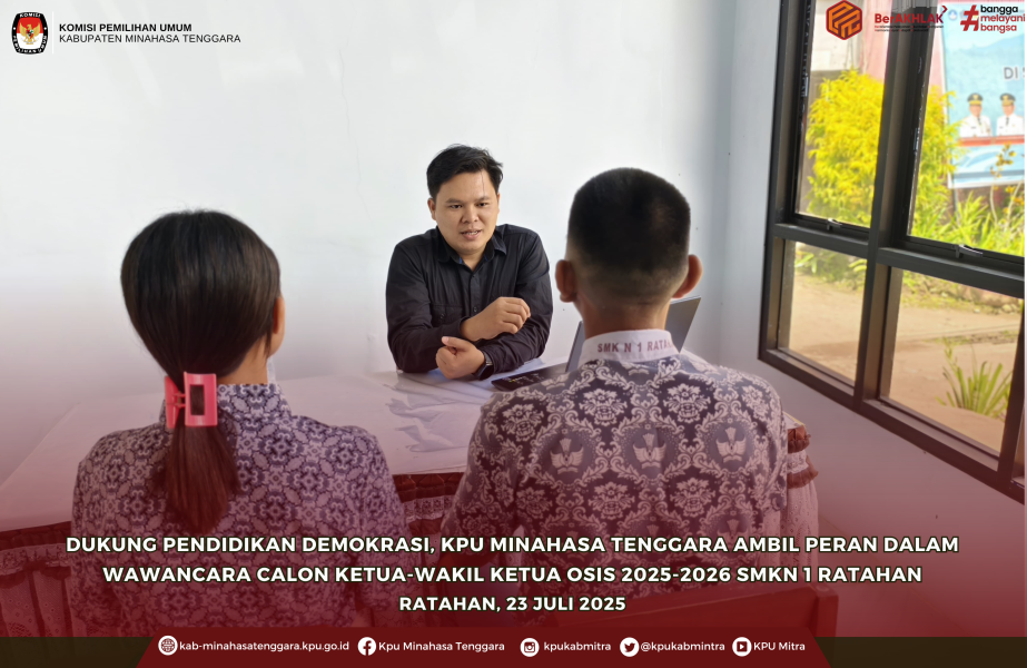 Sebagai bagian dari program Pendidikan Pemilih berkelanjutan, Komisi Pemilihan Umum (KPU) Kabupaten Minahasa Tenggara turut mengambil peran aktif dalam proses ini dengan menjadi tim pewawancara para bakal calon. Ketua Divisi Sosialisasi, Pendidikan Pemilih, Partisipasi Masyarakat dan SDM KPU Minahasa Tenggara, Lucky Mamahit, hadir langsung sebagai bagian dari tim wawancara guna menggali potensi dan pemahaman para calon terhadap nilai-nilai kepemimpinan dan demokrasi.