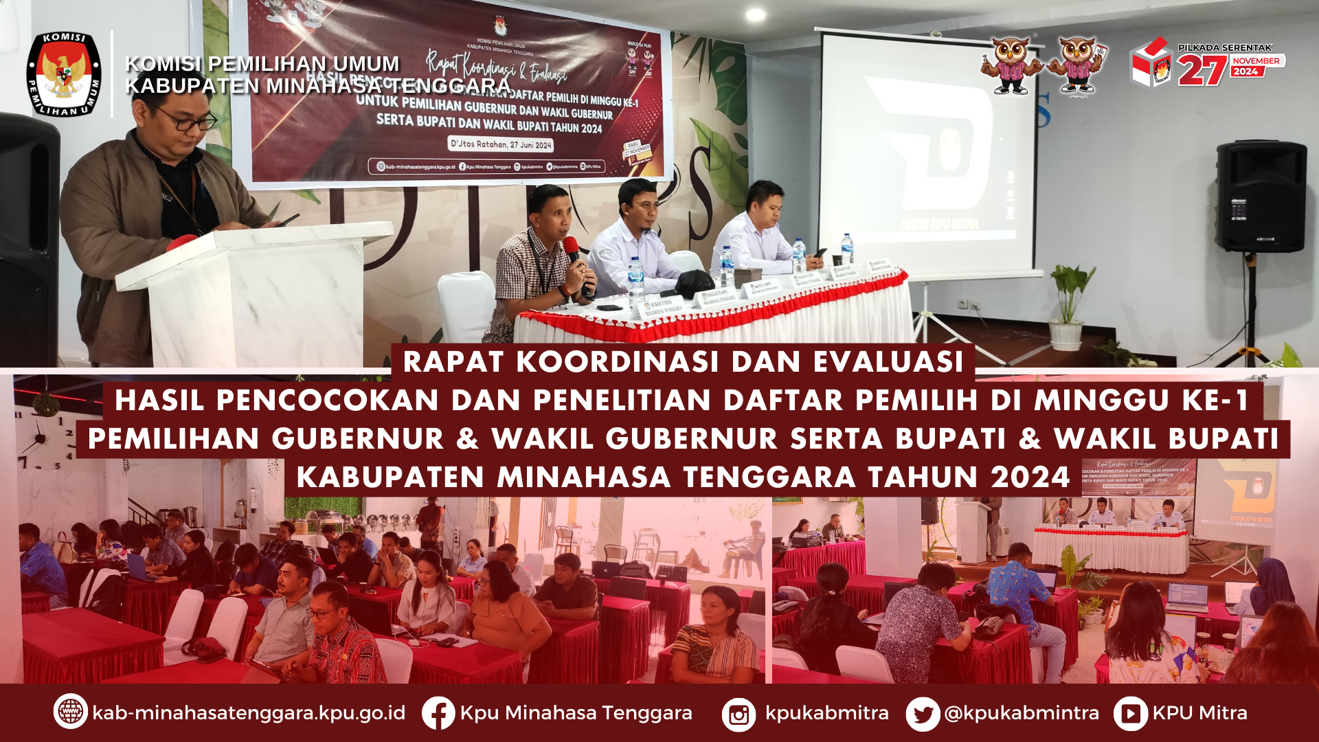 Ratahan - Kegiatan Pencocokan dan Penelitian (Coklit) sementara berproses. Memasuki hari ke-4 Kamis (27/6/2024), Komisi Pemilihan Umum (KPU) Minahasa Tenggara (Mitra) langsung menggelar evaluasi hasil coklit tahap pertama yang dilaksanakan di D'jtos Cafe and Resto, Ratahan.