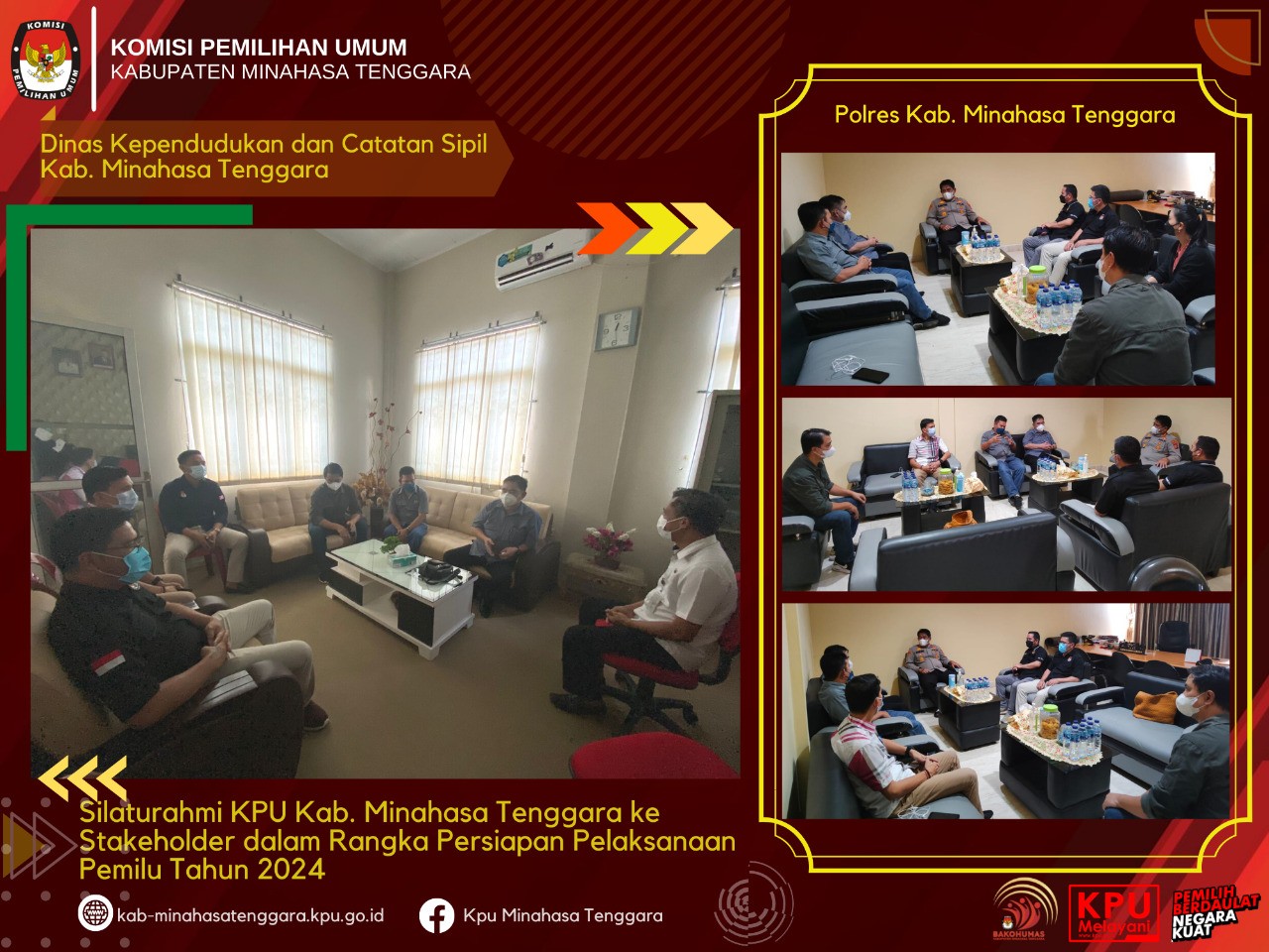 RATAHAN- Komisi Pemilihan Umum (KPU) Kabupaten Minahasa Tenggara (Mitra) melakukan silaturahmi ke sejumlah Stakeholder dalam rangka menjaga sinergitas untuk menghadapi Pemilu dan Pemilihan serentak tahun 2024, Rabu (26/01/2022).