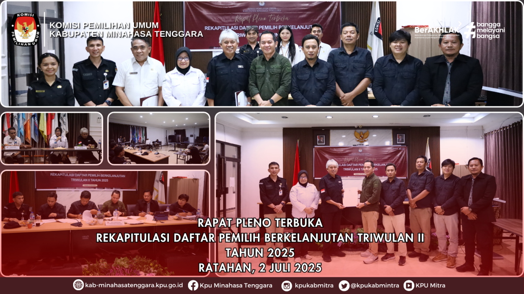 Ratahan - KPU Kabupaten Minahasa Tenggara menyelenggarakan Rapat Pleno Terbuka Rekapitulasi Daftar Pemilih Berkelanjutan Triwulan II Tahun 2025 di Aula Kantor KPU Kabupaten Minahasa Tenggara, Ratahan, Rabu (2/7/2025).