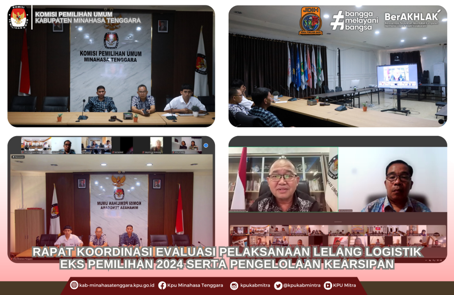 KPU KABUPATEN MINAHASA TENGGARA IKUTI RAPAT KOORDINASI EVALUASI PELAKSANAAN LELANG LOGISTIK EKS PEMILIHAN 2024 SERTA PENGELOLAAN KEARSIPAN