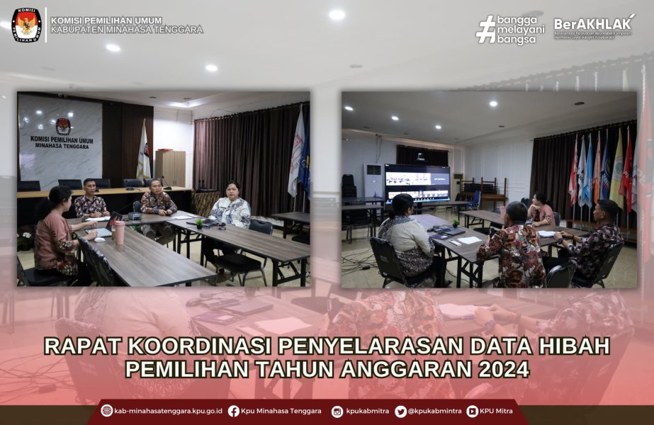 Ratahan - Komisi Pemilihan Umum Kabupaten Minahasa Tenggara mengikuti kegiatan Rapat Koordinasi Penyelarasan Data Hibah Pemilihan Tahun Anggaran 2024 pada Jumat, 13 Juni 2025 yang dilaksanakan secara daring via Zoom Meeting oleh Komisi Pemilihan Umum Provinsi Sulawesi Utara.