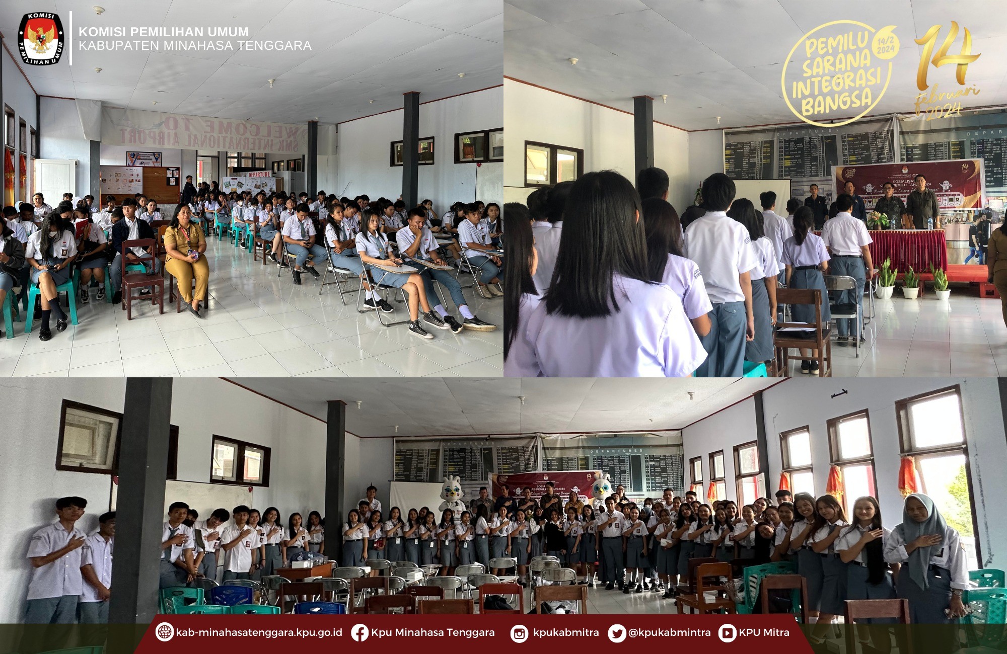 kab-minahasatenggara.kpu.go.id, Ratahan - Komisi Pemilihan Umum Kabupaten Minahasa Tenggara menggelar Sosialisasi KIRAB Pemilu 2024 kepada pemilih pemula di SMK Negeri 1 Ratahan, Selasa (28/03).