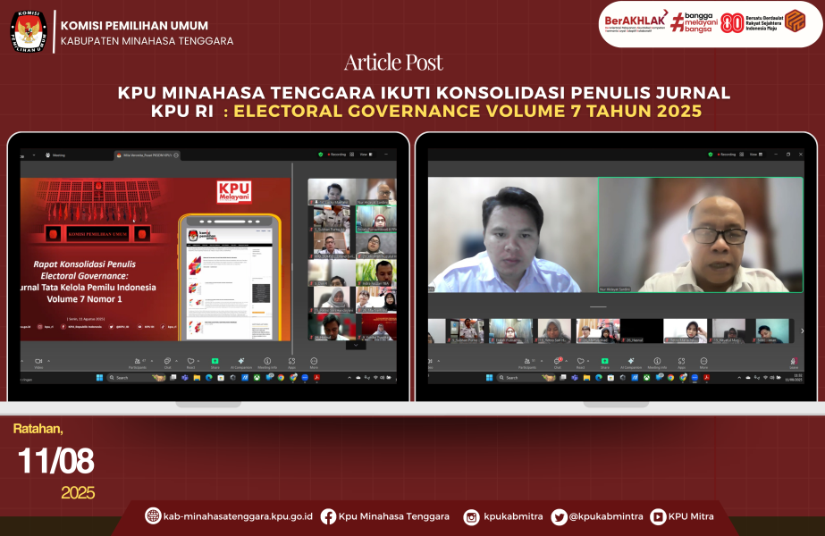 Sebagai tindak lanjut, Lucky Mamahit mengikuti Rapat Konsolidasi Penulis Jurnal Electoral Governance: Jurnal Tata Kelola Pemilu Indonesia Volume 7 Nomor 1 Tahun 2025 secara daring pada Senin, 11 Agustus 2025. Kegiatan yang digelar melalui Zoom Meeting ini merupakan tindak lanjut bagi para penulis yang abstraknya telah lolos seleksi.