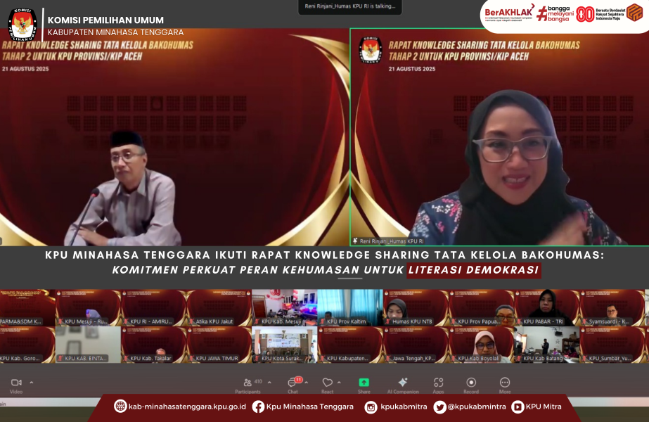 Ratahan - Komisi Pemilihan Umum (KPU) Republik Indonesia menegaskan pentingnya kecepatan, ketepatan, dan kebermanfaatan informasi publik dalam menjaga kualitas pelayanan. Hal ini menjadi sorotan utama pada kegiatan Rapat Knowledge Sharing Tata Kelola Bakohumas Tahap 2 yang digelar secara daring, Kamis (21/8/2025), dengan partisipasi KPU Provinsi serta KPU Kabupaten/Kota se-Indonesia.