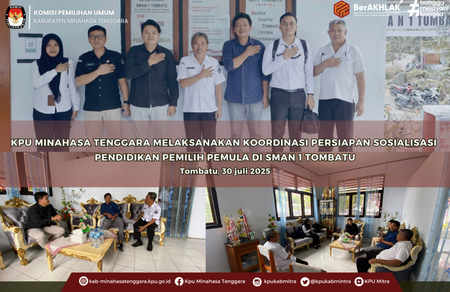 Koordinasi dilaksanakan langsung oleh Ketua Divisi Teknis Penyelenggaraan Pemilu, Ryan J. Sandag, dan Ketua Divisi Sosialisasi, Pendidikan Pemilih, Partisipasi Masyarakat, dan SDM, Lucky Mamahit, bersama jajaran staf Sekretariat KPU Mitra. Rombongan disambut oleh Kepala SMAN 1 Tombatu, Bapak Very Wanta, S.Pd., M.M yang menyatakan dukungan penuh terhadap upaya KPU dalam menghadirkan pendidikan demokrasi di lingkungan sekolah. Selain menjadi sarana sosialisasi, kegiatan ini juga difokuskan pada koordinasi teknis penyelenggaraan pemilihan OSIS yang akan mengacu pada prinsip-prinsip dasar pemilu, seperti keterbukaan, keadilan, dan partisipasi. KPU Mitra direncanakan akan mendampingi tahapan, mulai dari pembentukan panitia, pencalonan, kampanye, pemungutan suara, hingga penghitungan secara langsung di sekolah.