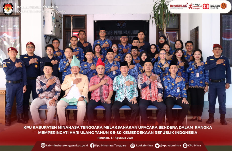 Ratahan - KPU Kabupaten Minahasa Tenggara Laksanakan Upacara Memperingati hari kemerdekaan Republik Indonesia ke 80 Tahun yang di gelar di halaman kantor KPU Minahasa Tenggara. Bertindak sebagai Inspektur Upacara yaitu Ketua KPU Mitra, Otnie N Tamod.