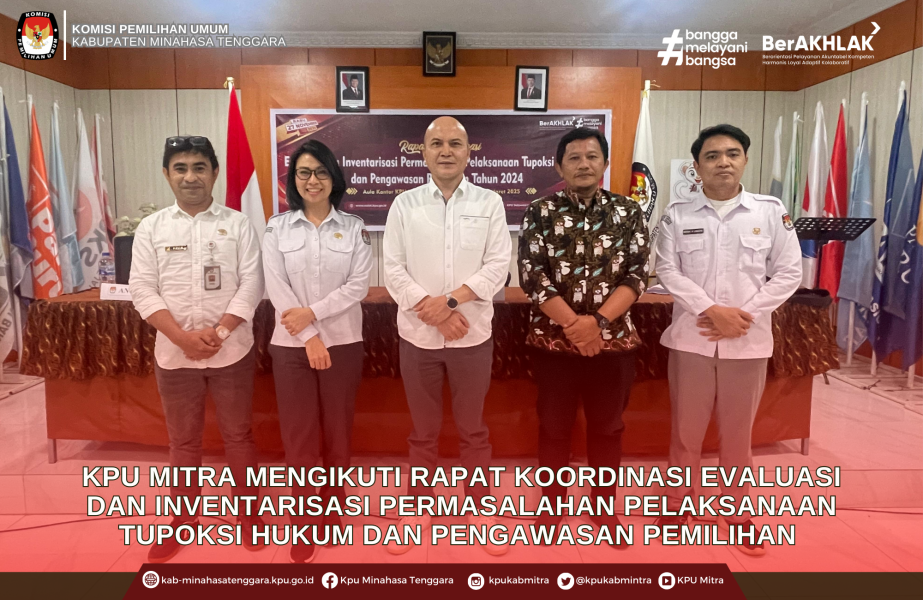 kab-minahasatenggara.kpu.go.id, Ratahan - Komis Pemilihan Umum Kabupaten Minahasa Tenggara (KPU Mitra) diwakili oleh Ketua Divisi Huhum dan Pengawasan Sastro Mokoagow, Kepala Sub Bagian Teknis Pemilu dan Hupmas Svedlana Manuhuruapon, beserta Staff Pelaksana Halim dan Andrew Londong mengikuti Rapat Koordinasi Evaluasi dan Inventarisasi Permasalahan Pelaksanaan Tupoksi Hukum dan Pengawasan Pemilihan yang dilaksanakan di Kantor KPU Minahasa Selatan (Minsel), Kamis (06/03/2025).