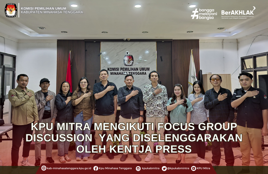 kab-minahasatenggara.kpu.go.id, Ratahan - Komisi Pemilihan Umum Kabupaten Minahasa Tenggara (KPU Mitra) mengikuti Focus Group Discussion (FGD) yang diselenggarakan oleh Kentja Press, Rabu 22 April 2025 bertempat di Aula Kantor KPU Minahasa Tenggara.