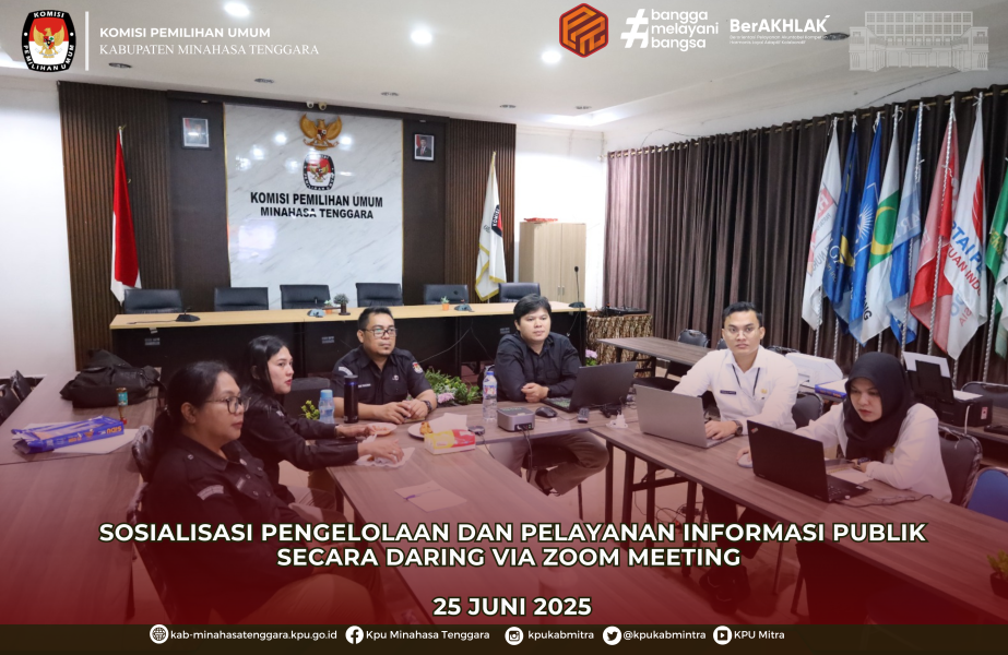 Ratahan – Komisi Pemilihan Umum (KPU) Kabupaten Minahasa Tenggara mengikuti kegiatan Sosialisasi dan Rapat Koordinasi Pengelolaan serta Pelayanan Informasi Publik yang diselenggarakan secara daring oleh KPU Republik Indonesia pada Rabu, 25 Juni 2025. Kegiatan ini diikuti oleh seluruh satuan kerja KPU se-Indonesia, termasuk Pejabat Pengelola Informasi dan Dokumentasi (PPID) dan admin e-PPID dari KPU Kabupaten/Kota serta Provinsi.