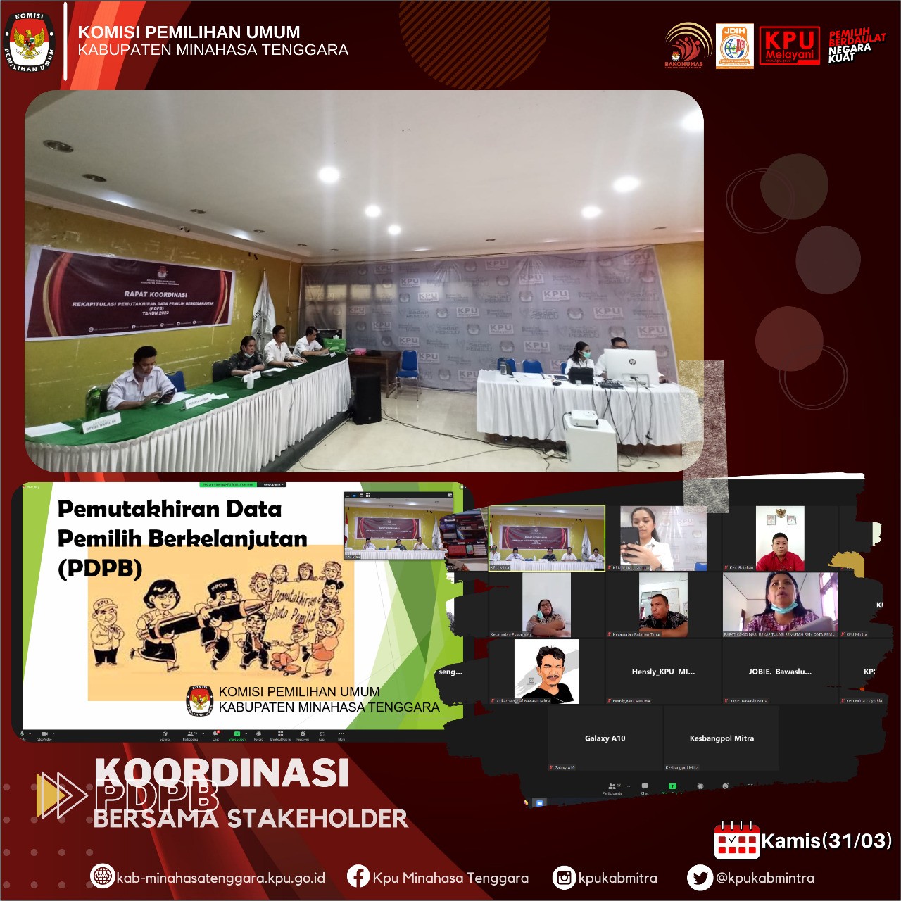 RATAHAN - Komisi Pemilihan Umum Kabupaten Minahasa Tenggara (KPU Mitra) melaksanakan Rapat Koordinasi (Rakor) Pemutakhiran Data Pemilih Berkelanjutan (PDPB) Periode Maret Tahun 2022 di Aula Kantor KPU Mitra, Kamis (31/03/2022)