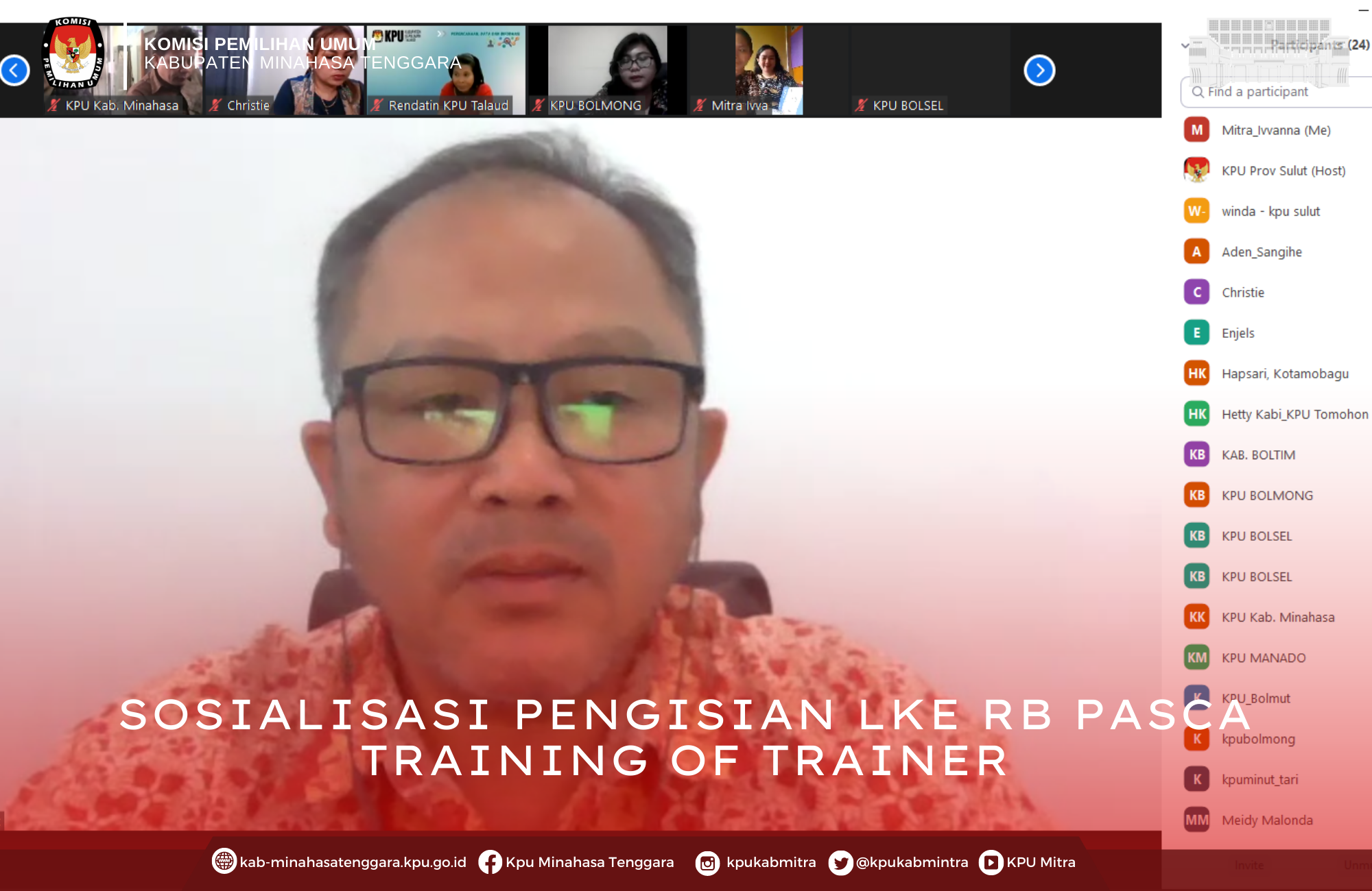 kab-minahasatenggara.kpu.go.id Ratahan – Komisi Pemilihan Umum (KPU) Kabupaten Minahasa Tenggara (Mitra) mengikuti Sosialisasi Pengisian LKE Reformasi Birokrasi (RB) Pasca Training of Trainer secara daring melalui aplikasi Zoom Meeting, Jumat (22/07/2022)