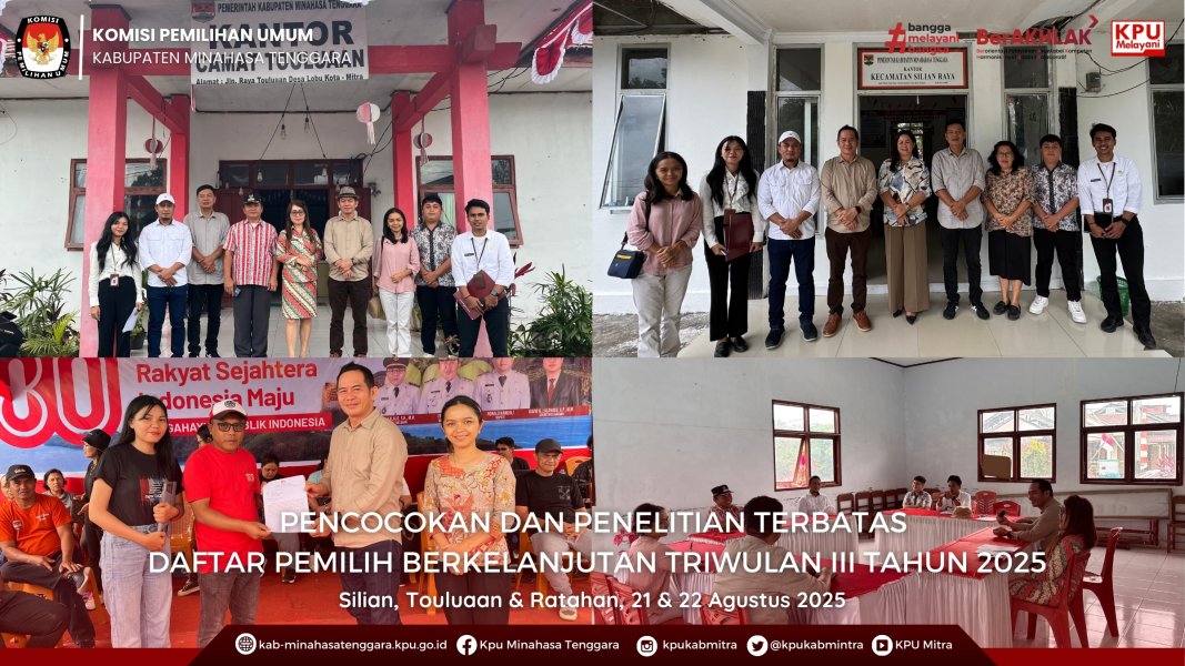 Ratahan - Komisi Pemilihan Umum (KPU) Kabupaten Minahasa Tenggara (Mitra) Kembali melakukan Pencocokan dan Penelitian Terbatas (Coktas) terkait Pemutakhiran Daftar Pemilih Berkelanjutan (PDPB) Triwulan ke III sebagai tindak lanjut Surat Edaran KPU Provinsi Sulawesi Utara nomor 197/PP.07-SD/71/3.1/2025 tentang Pemberitahuan Pelaksanaan PDPB.