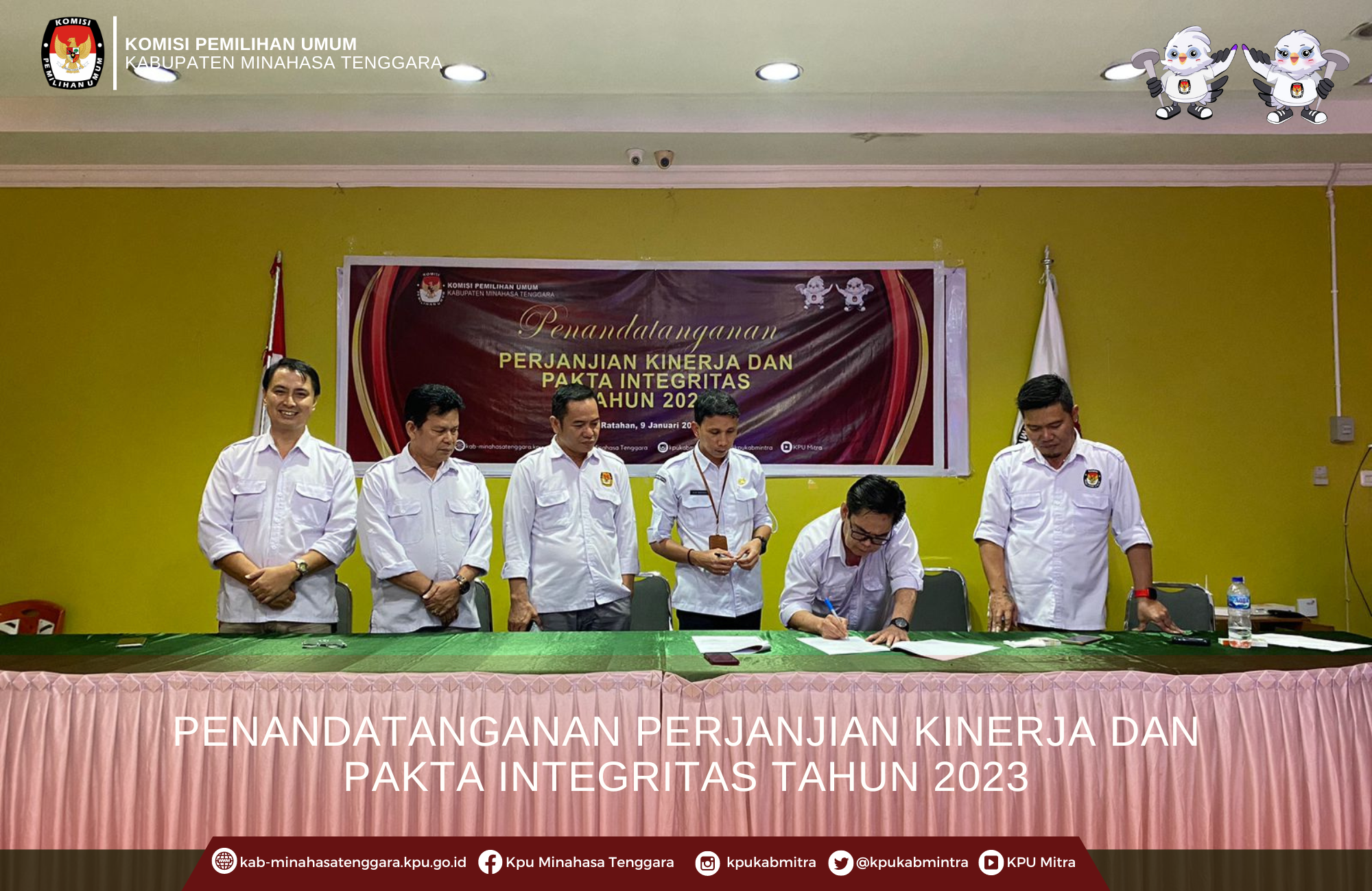 kab-minahasatenggara.kpu.go.id, Ratahan - Komisi Pemlihan Umum Kabupaten Minahasa Tenggara (KPU Mitra) melaksanakan kegiatan Penandatanganan Perjanjian Kinerja dan Pakta Integritas Tahun 2023 di aula kantor KPU Mitra, Senin (09/01/2023).
