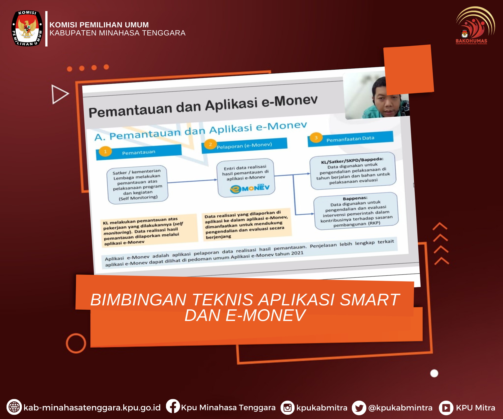 RATAHAN – Komisi Pemilihan Umum (KPU) Kabupaten Minahasa Tenggara (Mitra) mengikuti kegiatan bimbingan teknis (bimtek) aplikasi SMART dan e-Monev secara daring melalui aplikasi Zoom Meeting, Kamis (07/04/2022)