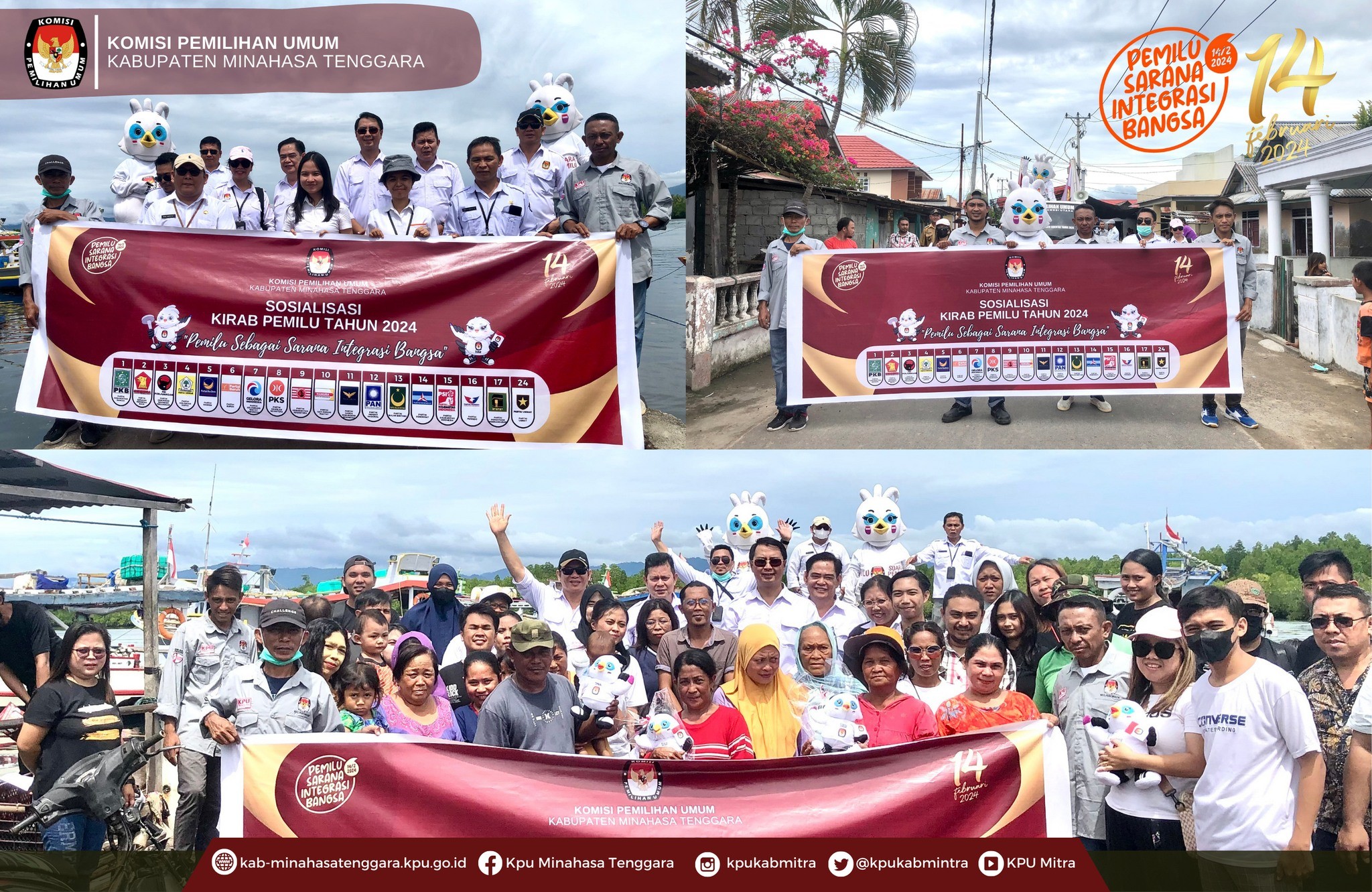 kab-minahasatenggara.kpu.go.id, Ratahan - Komisi Pemilihan Umum Kabupaten Minahasa Tenggara (KPU Mitra) menggelar kegiatan sosialisasi dalam rangka Kirab Pemilu 2024 kepada komunitas nelayan di desa Tumbak Kecamatan Pusomen Kabupaten Minahasa Tenggara pada Senin (27/03/2023). Kegiatan ini diisi dengan pengenalan bendera partai politik peserta pemilu tahun 2024, pembagian flayer serta sosialisi waktu pemilihan pada 14 Februari 2024 mendatang.