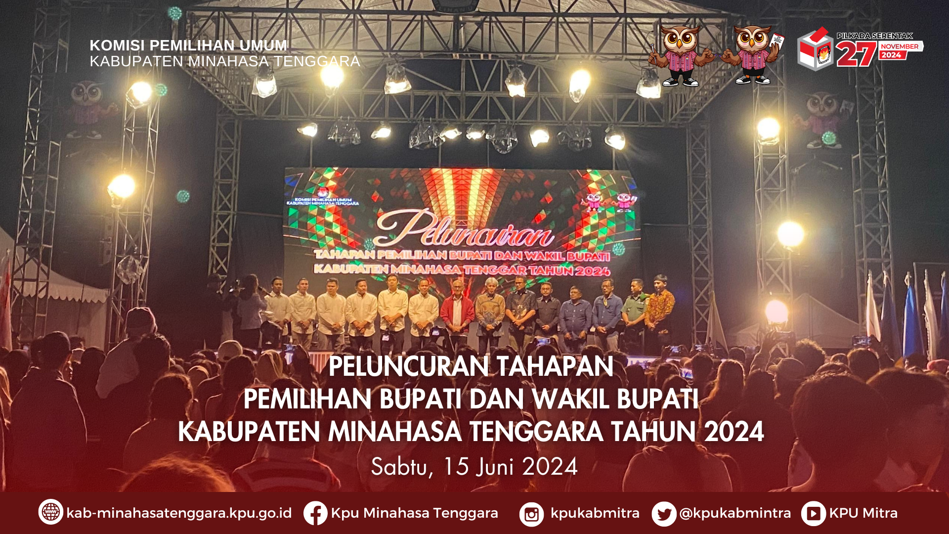 “Terima kasih Pak Pj Bupati, Pak Sekda (Sekretaris Daerah) beserta seluruh jajaran Pemkab Mitra. Tahun lalu kami sudah menandatangani NPHD (Nota Perjanjian Hibah Daerah) untuk Pilkada Mitra sebesar 32 Milyar. Jadi, dana yang digunakan untuk membiayai kegiatan di seluruh tahapan Pilkada 2024 ini merupakan hibah dari Pemkab Mitra, termasuk membiayai kegiatan Peluncuran Pilkada ini,” tutur Otnie N Tamod saat menyampaikan sambutannya.