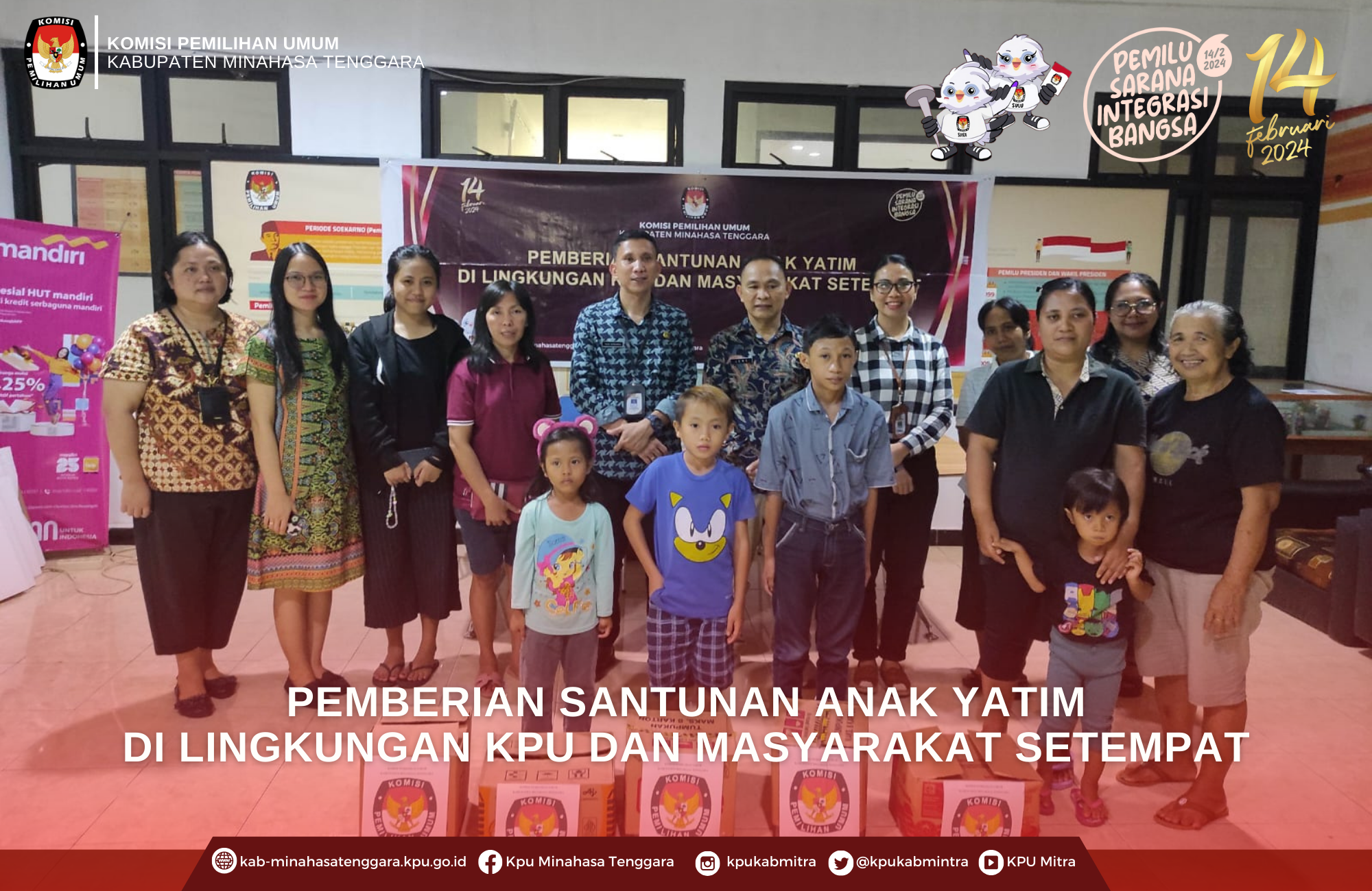 kab-minahasatenggara.kpu.go.id, Ratahan - Komisi Pemilihan Umum (KPU) Kabupaten Minahasa Tenggara (Mitra) kembali memberikan santunan kepada beberapa anak yatim yang ada di Ratahan, Jumat (9/2/2024).