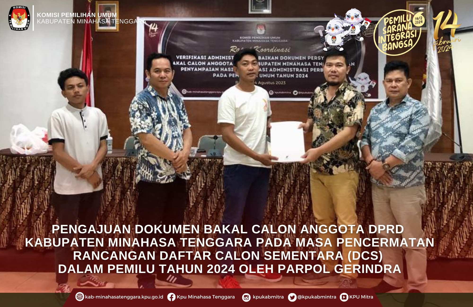 Pengajuan Dokumen Bakal Calon Anggota DPRD Kab. Minahasa Tenggara Pada Masa Pencermatan Rancangan Daftar Calon Sementara (DCS) Dalam Pemilu Tahun 2024 Oleh Partai Gerakan Indonesia Raya