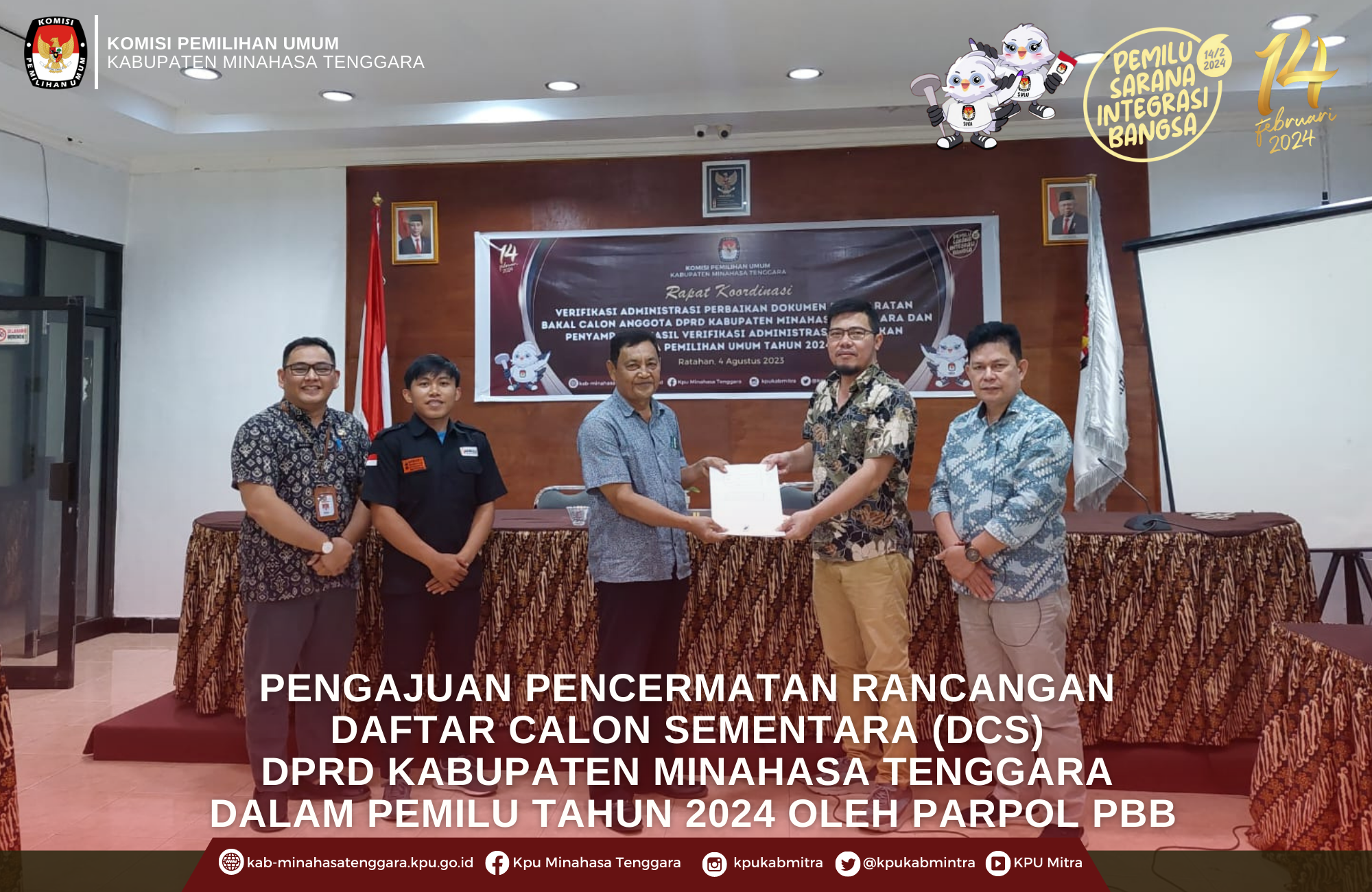 Pengajuan Dokumen Pencermatan Rancangan Daftar Calon Sementara (DCS) Anggota DPRD Kabupaten Minahasa Tenggara Dalam Pemilu Tahun 2024 Oleh Parpol PBB