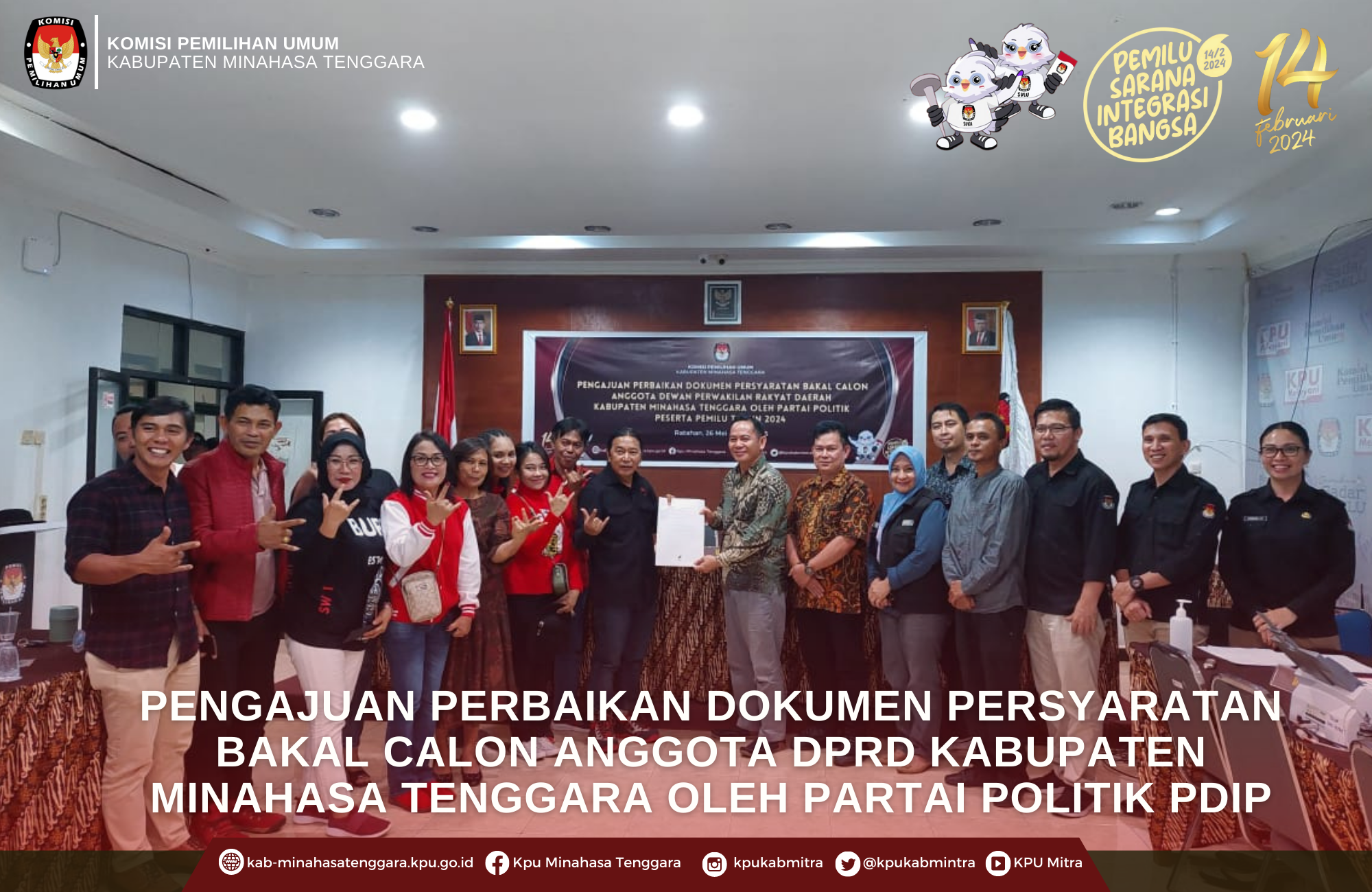 kab-minahasatenggara.kpu.go.id, Ratahan - Komisi Pemilihan Umum (KPU) Kabupaten Minahasa Tenggara (Mitra) menerima pengajuan perbaikan dokumen persyaratan bakal calon anggota DPRD kabupaten Mitra Pemilu Tahun 2024 dari Partai Demokrasi Indonesia Perjuangan (PDIP), Minggu (9/7/2023).