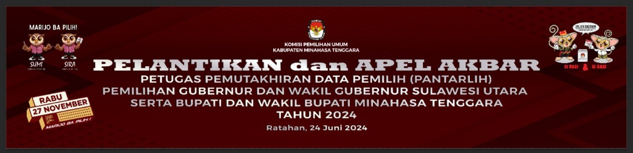 KPU Minahasa Tenggara mengucapkan selamat kepada seluruh petugas PANTARLIH yang terpilih dan berharap mereka dapat menjalankan tugasnya dengan baik dan penuh tanggung jawab demi suksesnya pemilihan umum di Kabupaten Minahasa Tenggara.