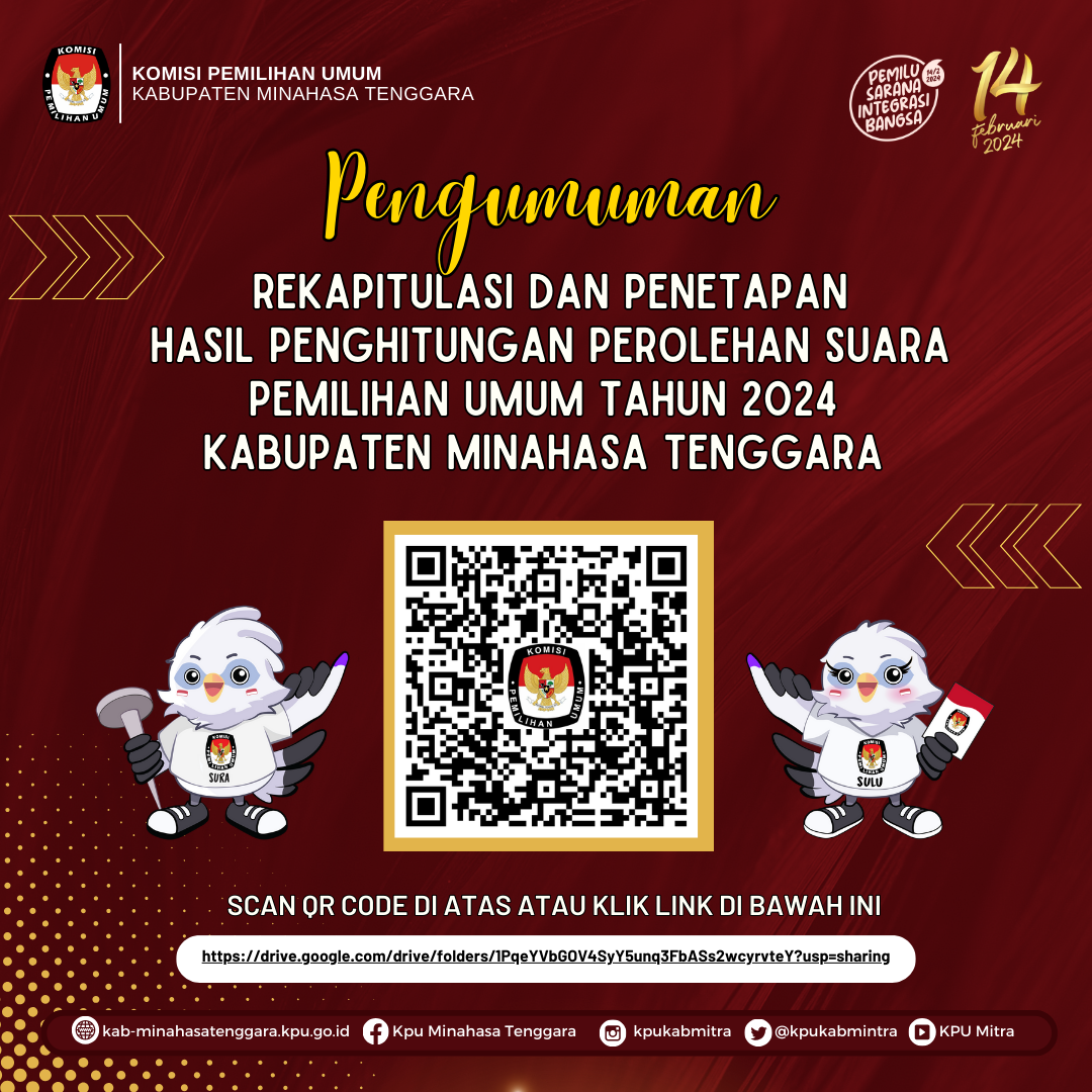 PENGUMUMAN REKAPITULASI DAN PENETAPAN HASIL PENGHITUNGAN PEROLEHAN SUARA PEMILIHAN UMUM TAHUN 2024 KABUPATEN MINAHASA TENGGARA