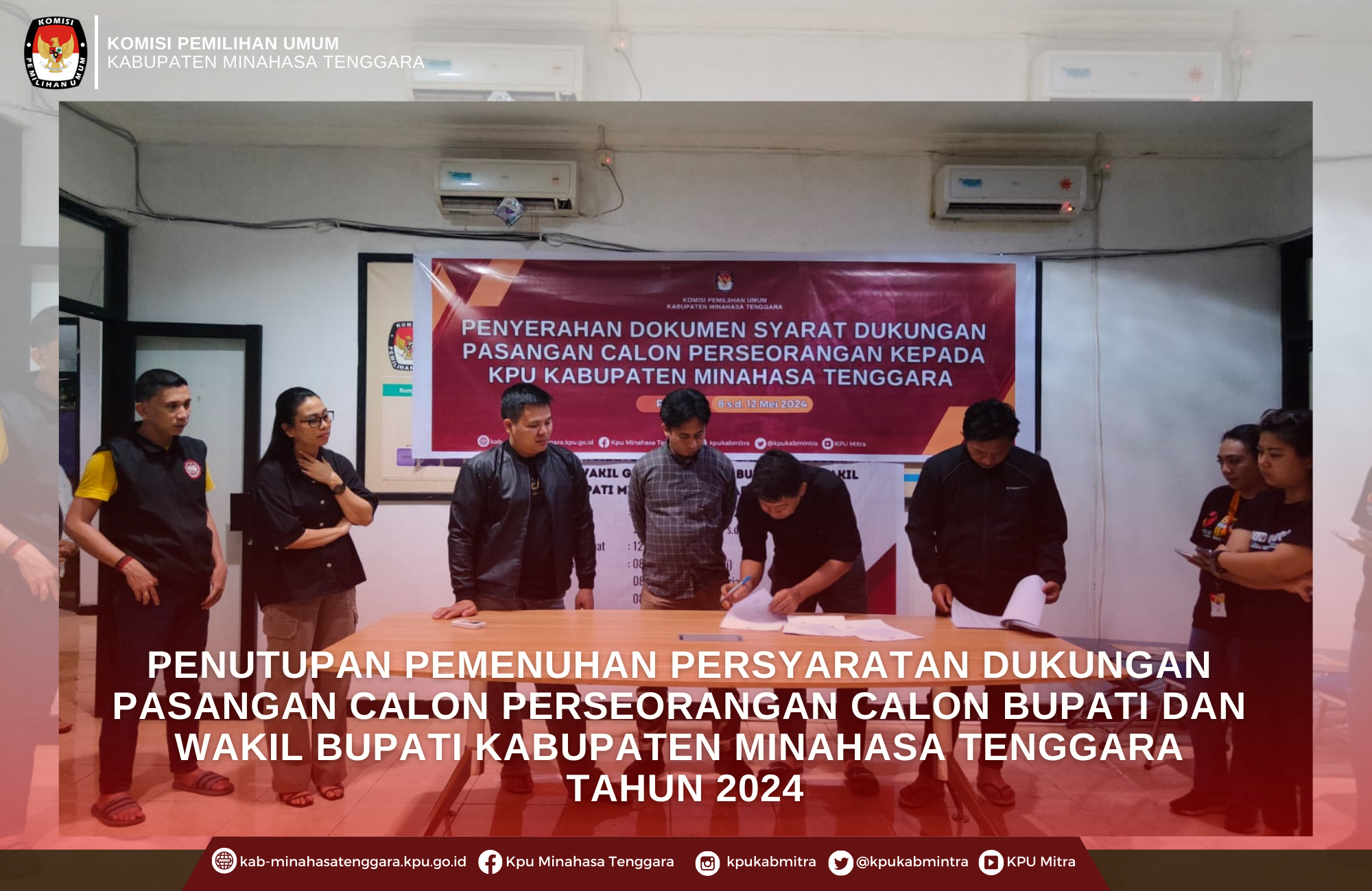 PENUTUPAN PEMENUHAN PERSYARATAN DUKUNGAN PASANGAN CALON PERSEORANGAN CALON BUPATI DAN WAKIL BUPATI KABUPATEN MINAHASA TENGGARA