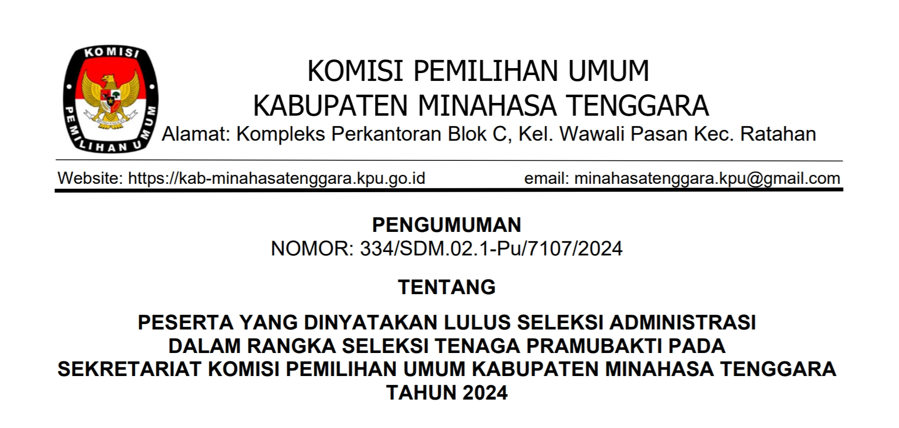 PESERTA YANG DINYATAKAN LULUS SELEKSI ADMINISTRASI DALAM RANGKA SELEKSI TENAGA PRAMUBAKTI PADA KPU KABUPATEN MINAHASA TENGGARA TAHUN 2024
