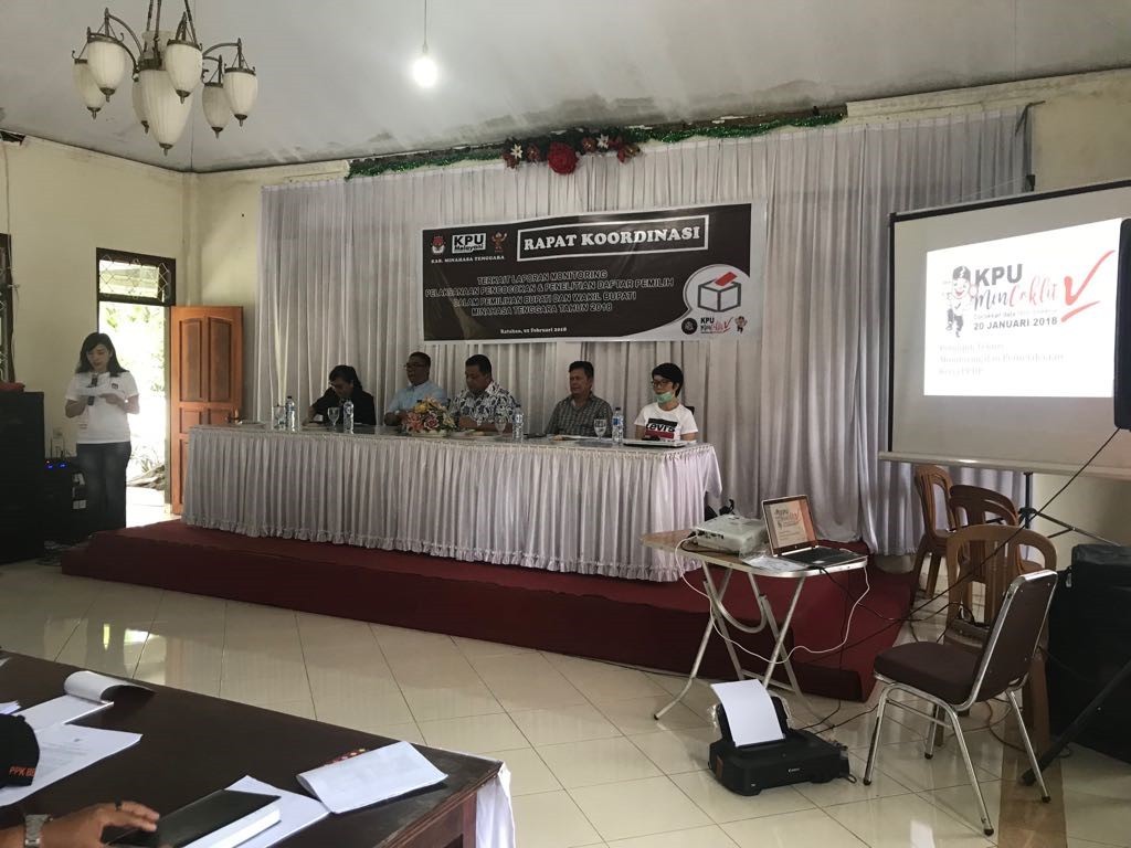 RATAHAN (2/2). Hari ini bertempat di Resto New Green Garden, KPU Mitra gelar Rapat Koordinasi bersama ketua dan anggota PPK se-Kabupaten Minahasa Tenggara terkait laporan monitoring pelaksanaan pencocokan dan penelitian (coklit) daftar pemilih dalam rangka Pilkada 2018.