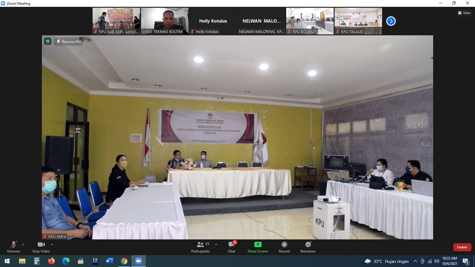 RATAHAN - Komisi Pemilihan Umum (KPU) Kabupaten Minahasa Tenggara melaksanakan Rapat Internal Sekretariat di Aula KPU Minahasa Tenggara, Selasa (5/10/2021).