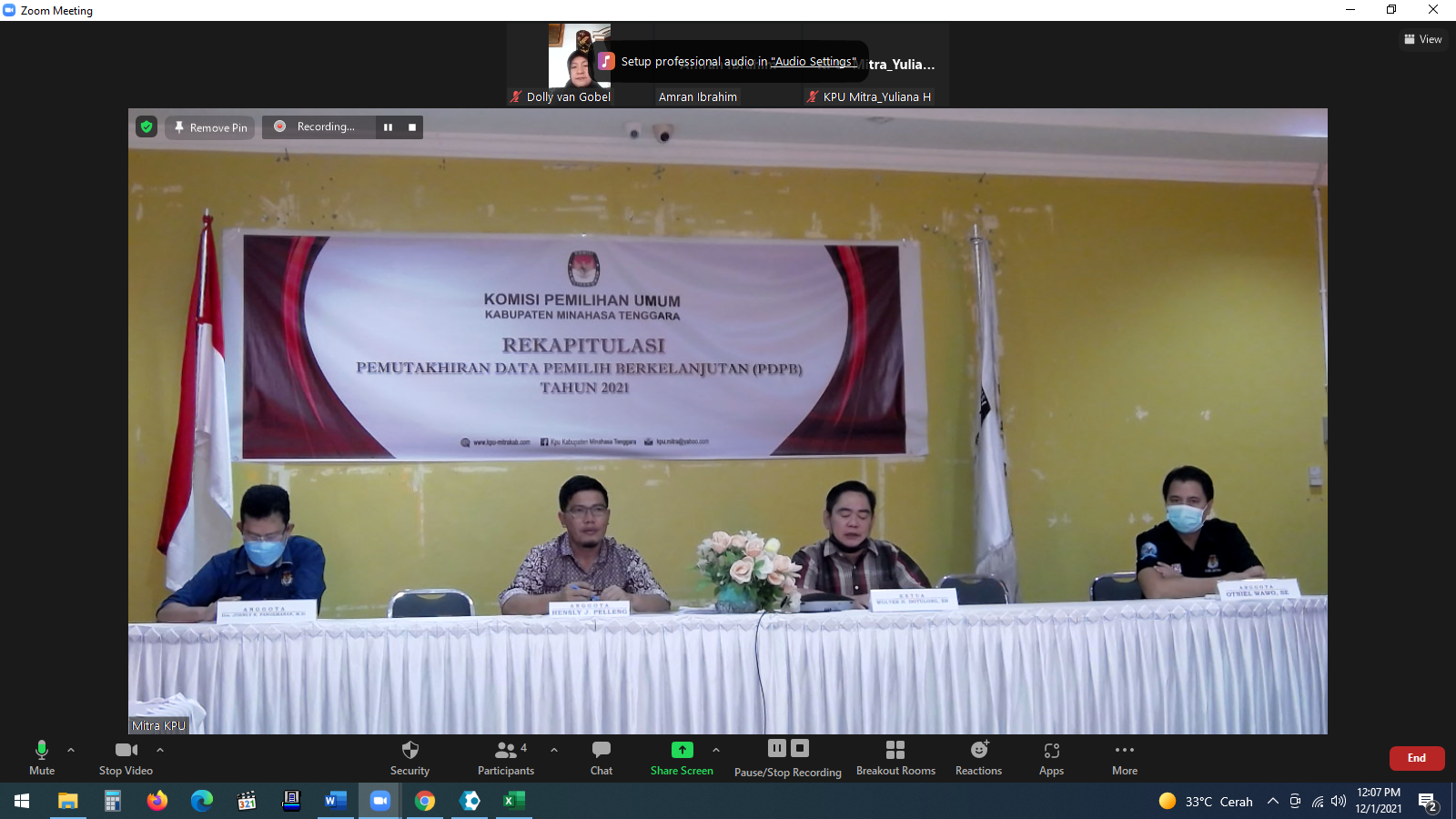 RATAHAN – Komisi Pemilihan Umum (KPU) Kabupaten Minahasa Tenggara (Mitra) melaksanakan Rapat Persiapan Rekapitulasi Pemutakhiran Data Pemilih Berkelanjutan (PDPB) periode November 2021 secara daring melalui aplikasi Zoom, Rabu (01/12/21).