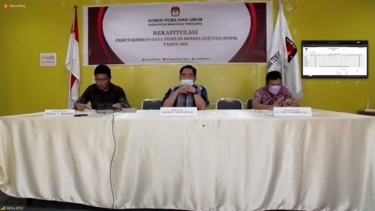 RATAHAN - Komisi Pemilihan Umum (KPU) Kabupaten Minahasa Tenggara (Mitra) kembali menggelar Rapat Koordinasi Rekapitulasi Pemutakhiran Data Pemilih Berkelanjutan (PDPB) Periode Agustus 2021 via Zoom Meeting (daring), Jumat 03/09/2021.