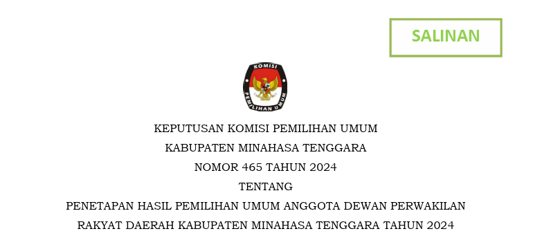 Salinan SK Penetapan Hasil Pemilu Anggota DPRD Kabupaten Mitra